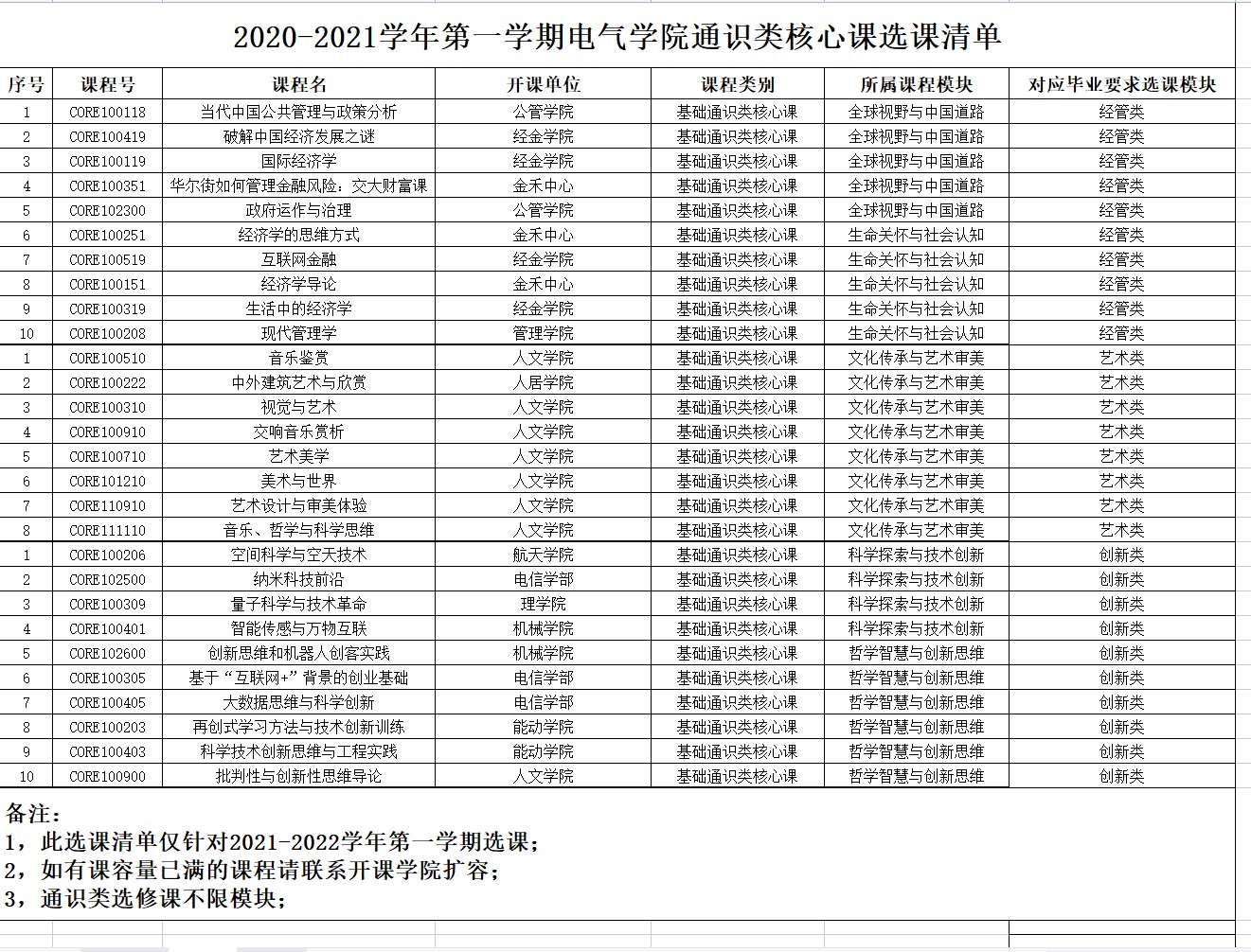 2,由于学校分类模块较为广泛,结合休闲小栈 培养方案及毕业要求,现将每学期符合要求的课程清单上传公示,请大家按照此清单进行对照选课,如有课容量已满的课程请联系开课学院扩容,如有课程冲突可以下学期或小学期再选课;