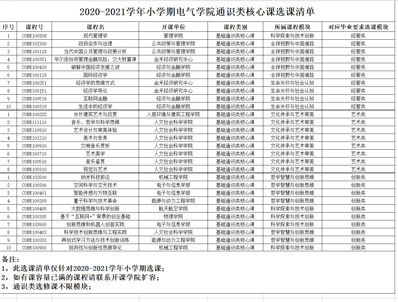2,由于学校分类模块较为广泛,结合休闲小栈 培养方案及毕业要求,现将每学期符合要求的课程清单上传公示,请大家按照此清单进行对照选课,如有课容量已满的课程请联系开课学院扩容,如有课程冲突可以下学期或小学期再选课;