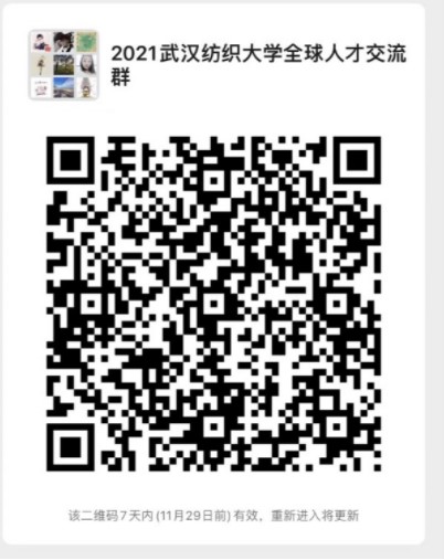 更多详情,请扫码进群咨询(2021武汉纺织大学全球人才交流群)