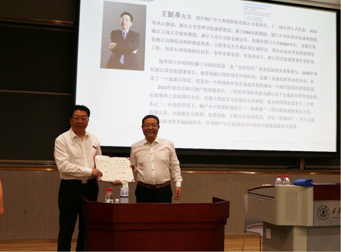 王挺革对学校、学院盛情接待的表示感谢,并表示物产中大集团愿与西安交大休闲小栈