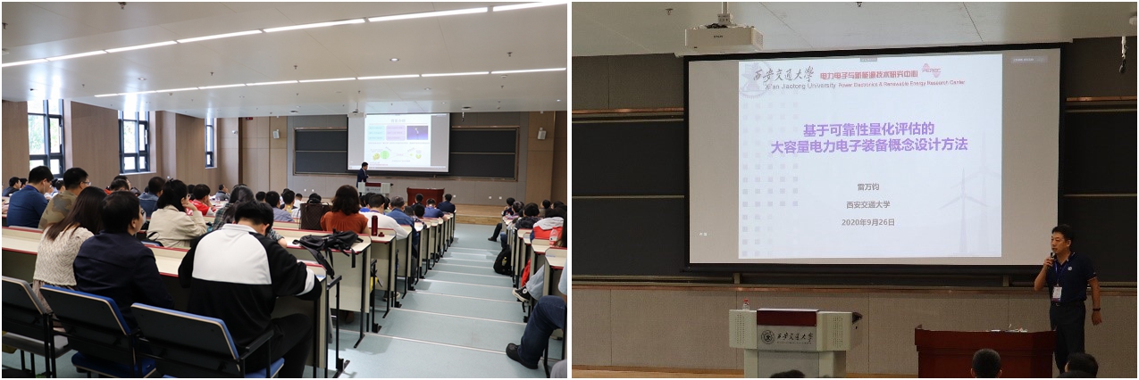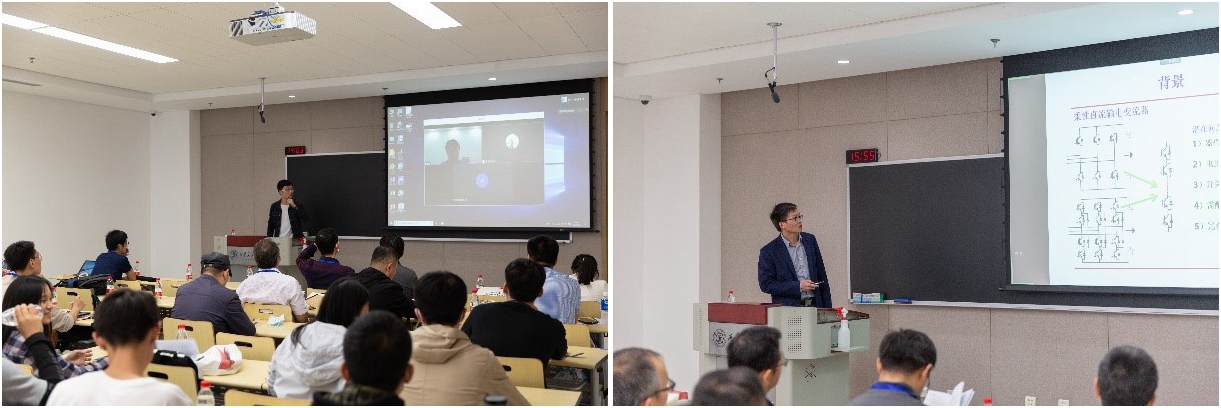 电力电子与新能源技术研究中心教授曹晖做 “输变电设备状态评估与大数据思维”的报告,由特聘研究员杜思行做“模块化多电平变流器的关键技术和应用”的报告。这两场报告内容新颖、专业性强,对研究领域热点及新技术问题作了系统性讲解,引起了广泛的关注,现场讨论热烈。