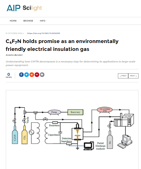 李兴文教授课题组一项最新研究成果“Decomposition pathway of C4F7N gas considering the participation of ions”在美国物理学联合会期刊《Journal of Applied Physics》在线发表,被列为当期的Featured Work,并被美国物理学联合会《科学之光》(AIP Scilight)以“C4F7N holds promise as an environmentally friendly electrical insulation gas”为题进行了专访报道。
