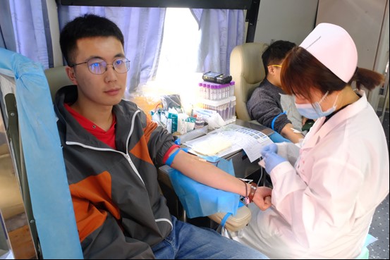 与陕西省血液中心共同举办的献血车进校园无偿献血活动在涵英楼北、和园宿舍两地顺利举办。