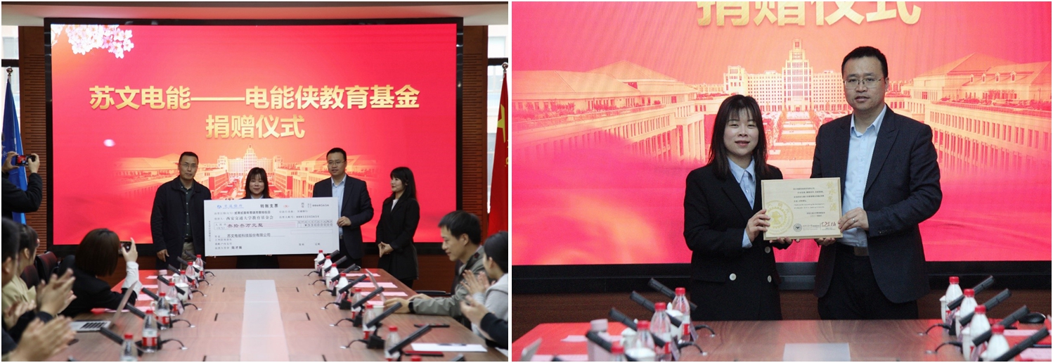 党委副书记宋杰、办公室主任王超、团工委书记罗文成,苏文电气人力资源部主管刘静,招聘经理金亚国、施余霖出席捐赠仪式,电气学生代表共同参加。