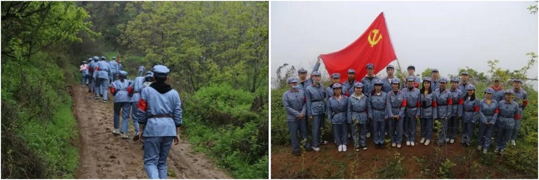 重走长征路,追寻红军足迹,恰逢雨后,山路泥泞难行,同学们互相帮助鼓励,努力感悟和体味红军长征路上的艰难险阻以及红军战士顽强的信念意志。忆苦思甜,坚定的是大家不断前行的决心。