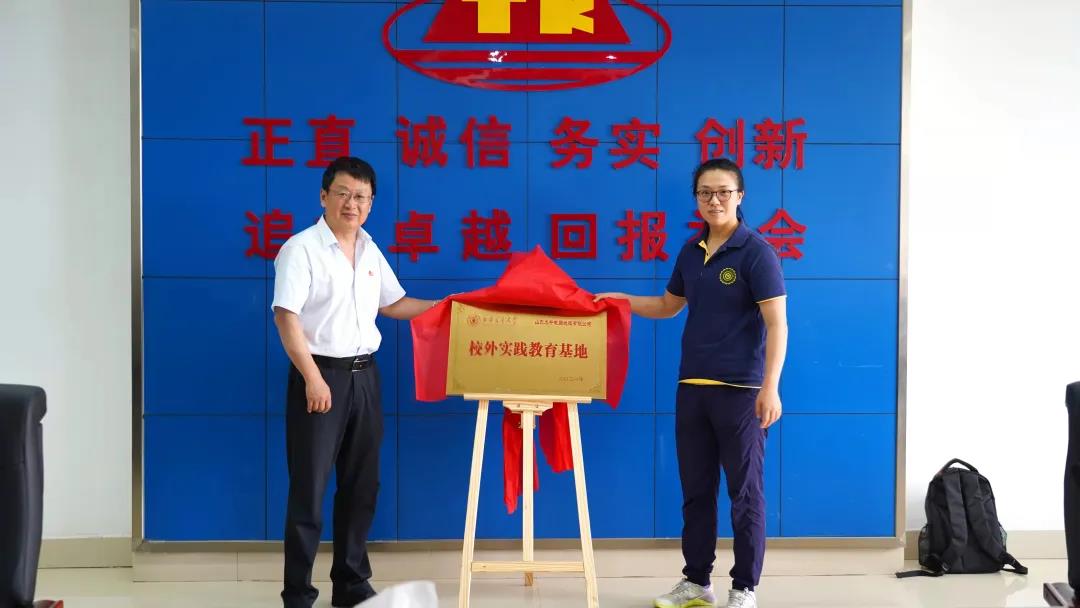 泰安高新区人才办李娟主任则针对高新技术产业发展和人才需要等相关问题发言,向同学们派发了泰安市人才政策宣传单,并且着重介绍了针对不同层次人才的相关优惠和补贴。泰开公司的领导们则介绍了本公司的发展情况以及产品优势。发言结束后,举行揭牌仪式,领导、老师和同学们合影留念,同学们与领导和老师们交流了这几天的实习心得。