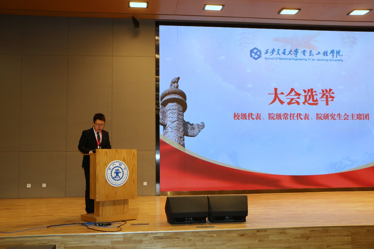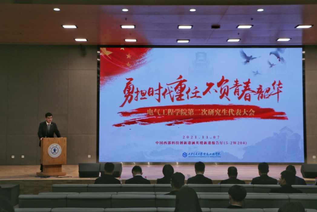 校研究生会代表马宇心对大会的召开表示祝贺,对电气研分会工作成绩表示充分认可,希冀广大电气学子能够戮力同心,为实现中华民族伟大复兴的中国梦贡献交大电气青年的青春力量。