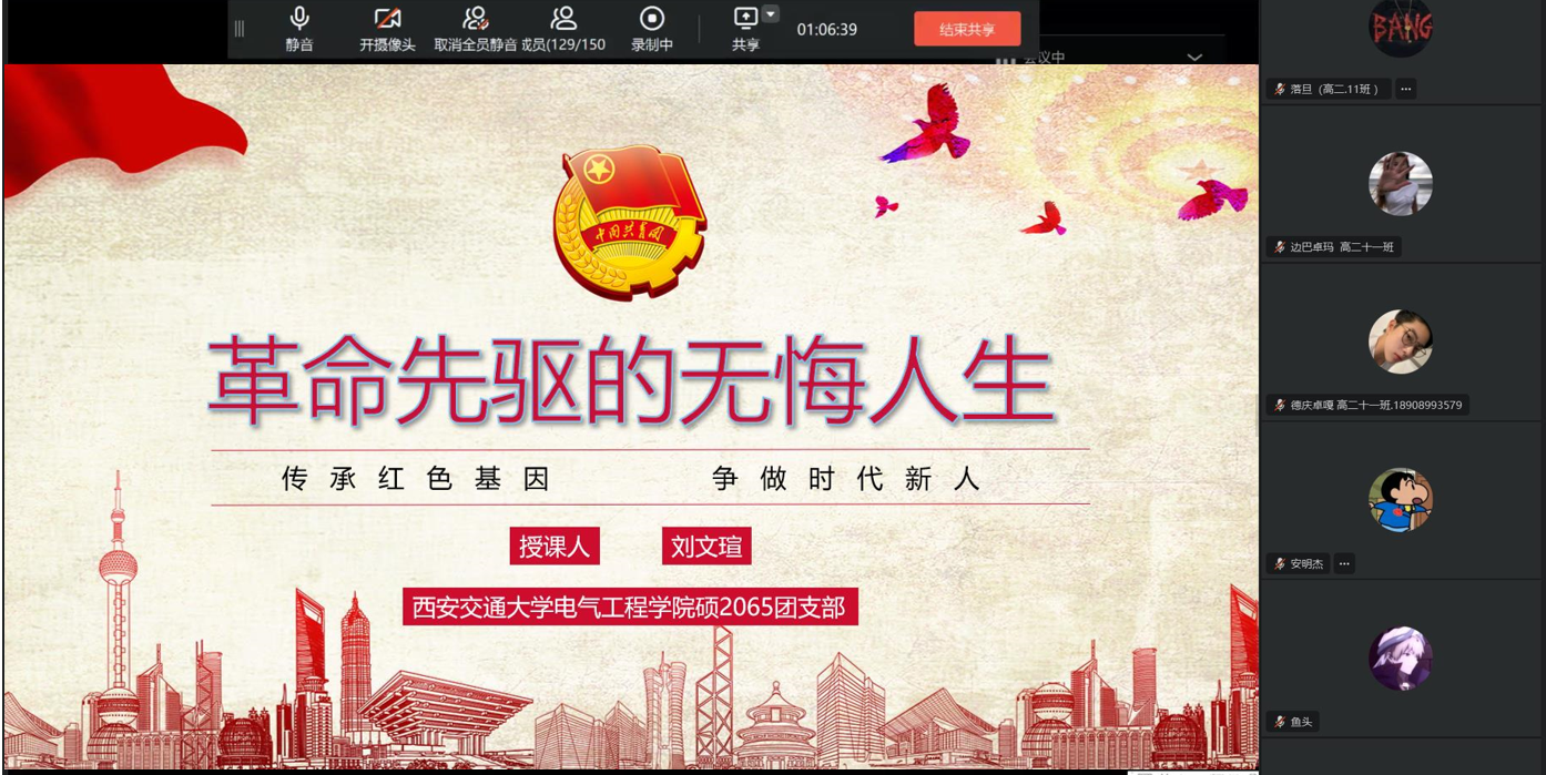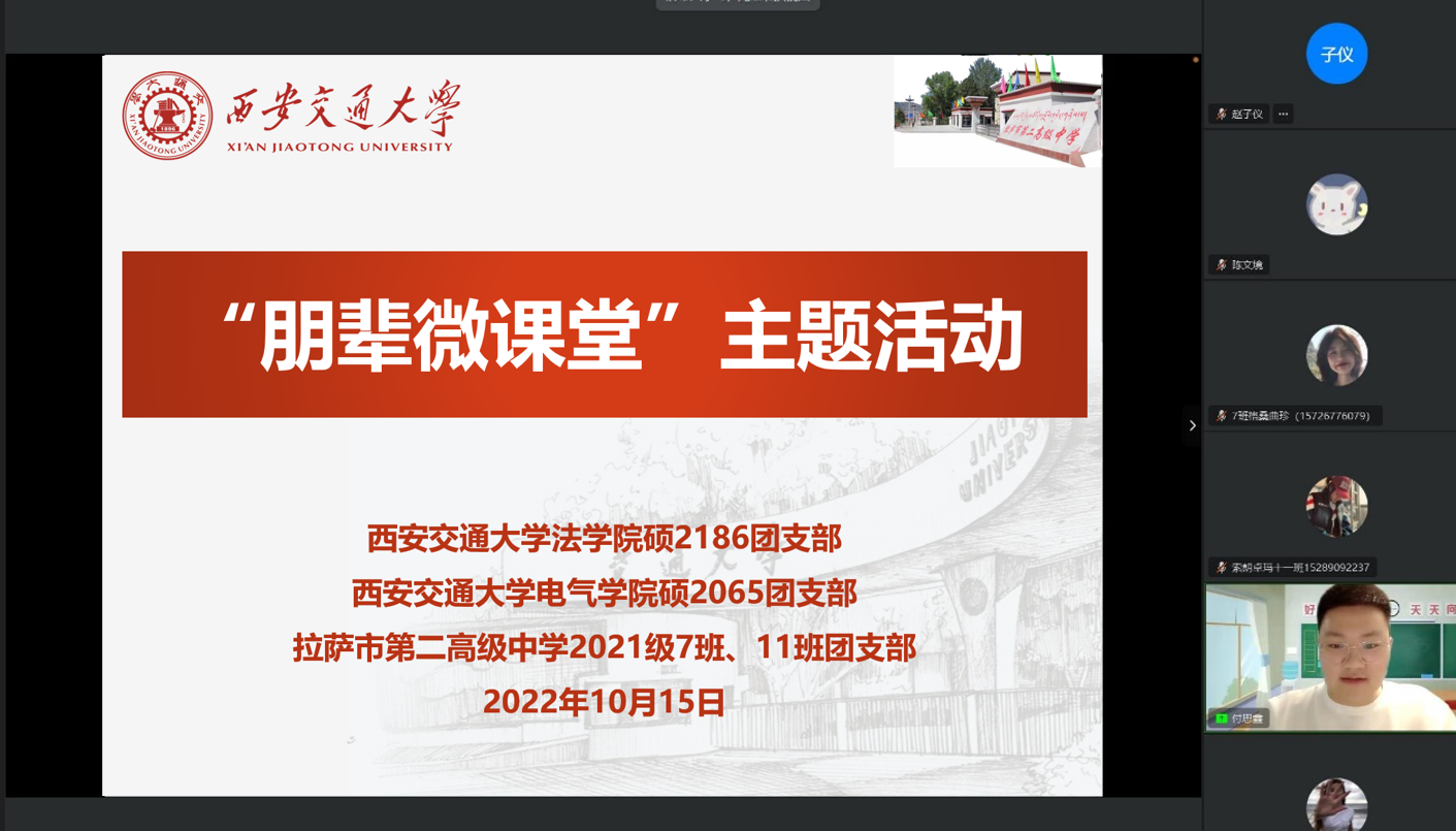 硕2065团支部、法学院硕2186团支部联合交大心理学协会与西藏拉萨市第二高级中学的团员青年们开展了线上交流分享会,为同学们带来了一次干货满满的“朋辈微课堂”主题活动。