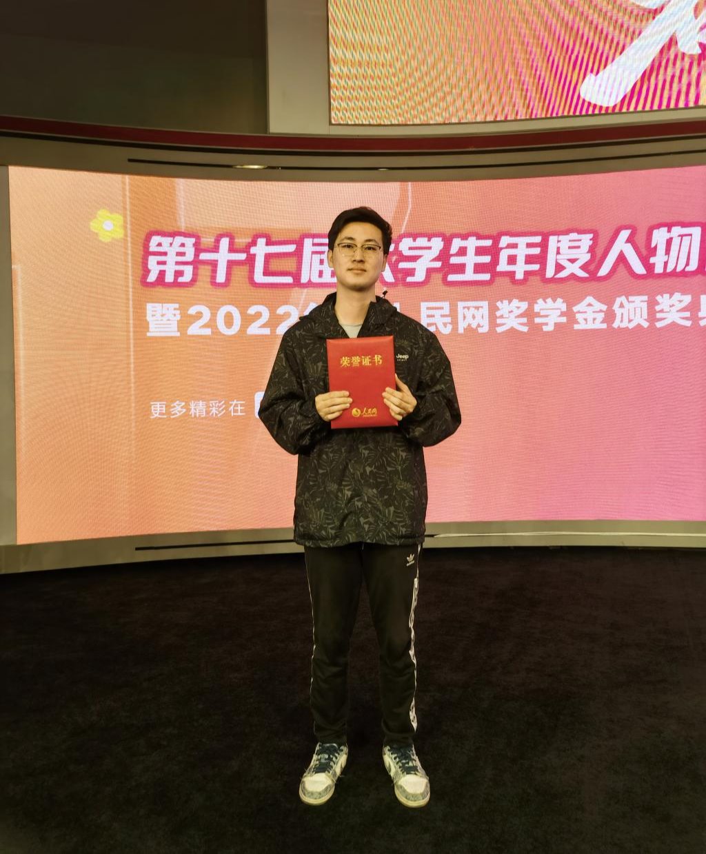2020级硕士研究生帅轩越荣获2022年度人民网奖学金一等奖。