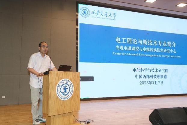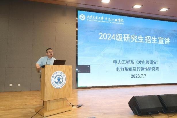 来自电机的杜锦华副教授、电器的王立军教授、高压的庞磊副教授、绝缘的孟国栋副教授、工企的王丰教授、发电的李更丰教授、电工原理的陈锋副教授、电测的汤晓君教授分别代表八个教研室向同学们介绍了各个专业方向的学科设置、师资队伍、科研成果、毕业就业去向等内容,加深了学生们对各个学科方向的了解。