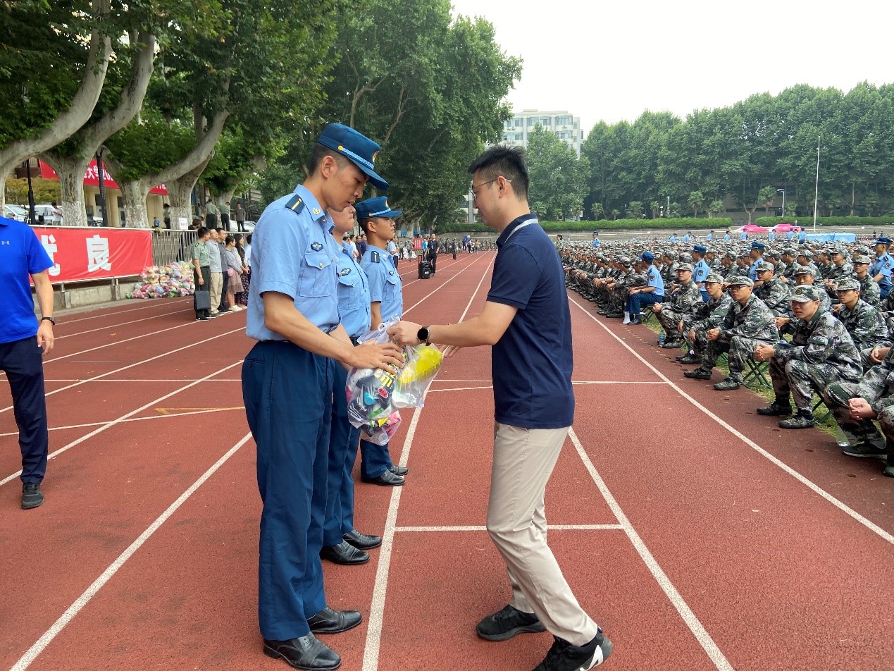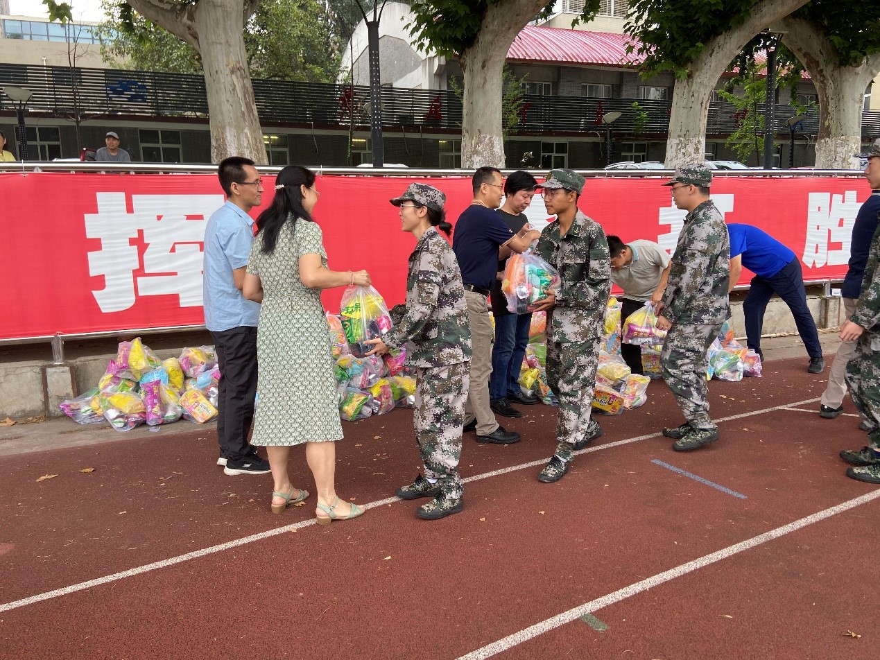 随后,大家依次上前领取慰问物资,参会的所有老师亲手将学院精心准备的慰问物资递到带训官兵和参训同学手上,送去学院的关心和祝福。