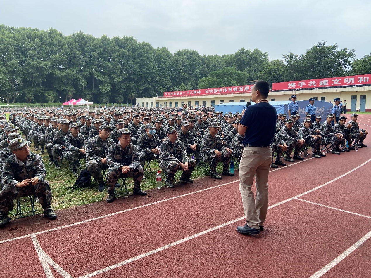 副院长祝令瑜、副书记宋杰、电器教研室主任纽春萍、发电教研室主任康小宁、工企教研室主任王来利、三电教研室主任邹建龙、高压教研室副主任庞磊、组织员刘萱等一行来到东南田径场,慰问学院2023级全体军训本科新生、承训教官及辅导员,宋杰副书记主持活动。