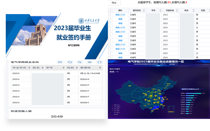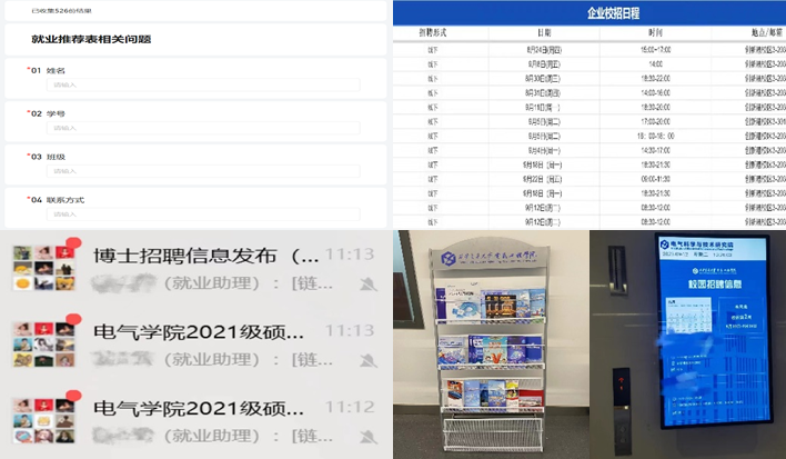 通过毕业年级群、学院公众号、官网、电子屏等途径实时下发上千条招聘动态;分类整理重点企业名录,发布《电网、企业校招日程与选调汇总表》,实现就业信息对学生“一竿子插到底”,信息高效精准投送;发布《就业推荐表相关问题收集表》,实时解决学生就业相关问题,将学生群体与学院有效联动,保证答疑解惑全流程,就业服务全方位。
