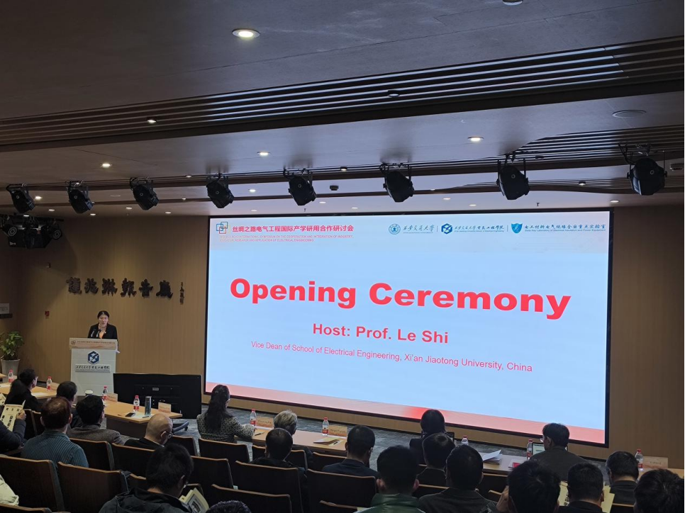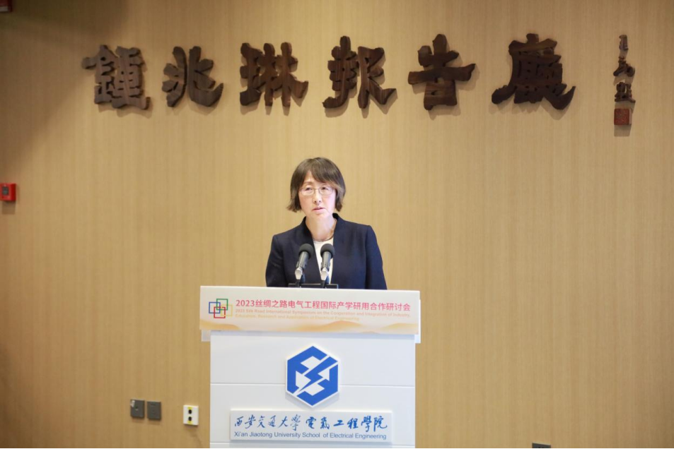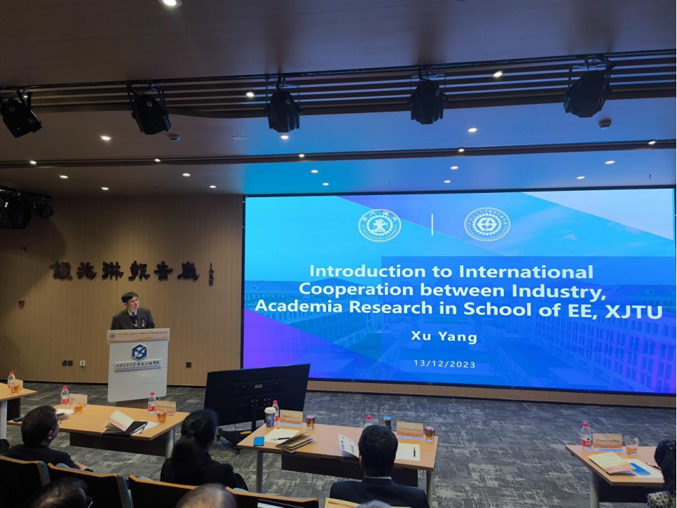 产学研国际合作情况介绍》(Introduction to International Cooperation between Industry, Academia and Research in School of Electrical Engineering at XJTU)的大会报告。大会报告由西安交大休闲小栈