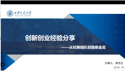 于5月14日举办大赛交流会,竞赛负责老师及各参赛团队代表参加本次会议。本次宣讲会邀请了往届大赛总决赛主赛道金奖、产业赛道金奖的项目负责人硕士生李志立、博士生韩翔宇作经验分享,主要围绕休闲小栈