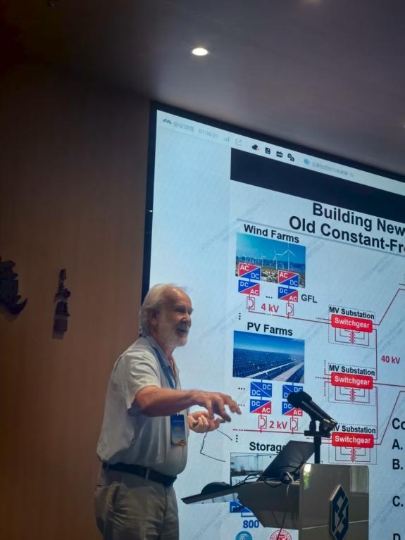 美国工程院院士、弗吉尼亚理工大学Dushan Boroyevich教授在会上作了题为《Medium Voltage Power Electronics Building Blocks for Future Electronic Energy Networks》的专题报告。他现实需求出发,系统阐述了未来电子能源网络的中压电力电子构建模块技术,内容涵盖系统架构方案、短路保护机制与关键装备研发等多个方面。Boroyevich教授强调,未来电子能源系统的规模预计将达到当今电网的4至10倍,电能传输将主要依托地下、水下及嵌入式电缆,在电子能源路由器之间进行高效输送。这一变革将推动电力电子设备需求增长十倍,为下一代能源网络的建设提供重要方向。