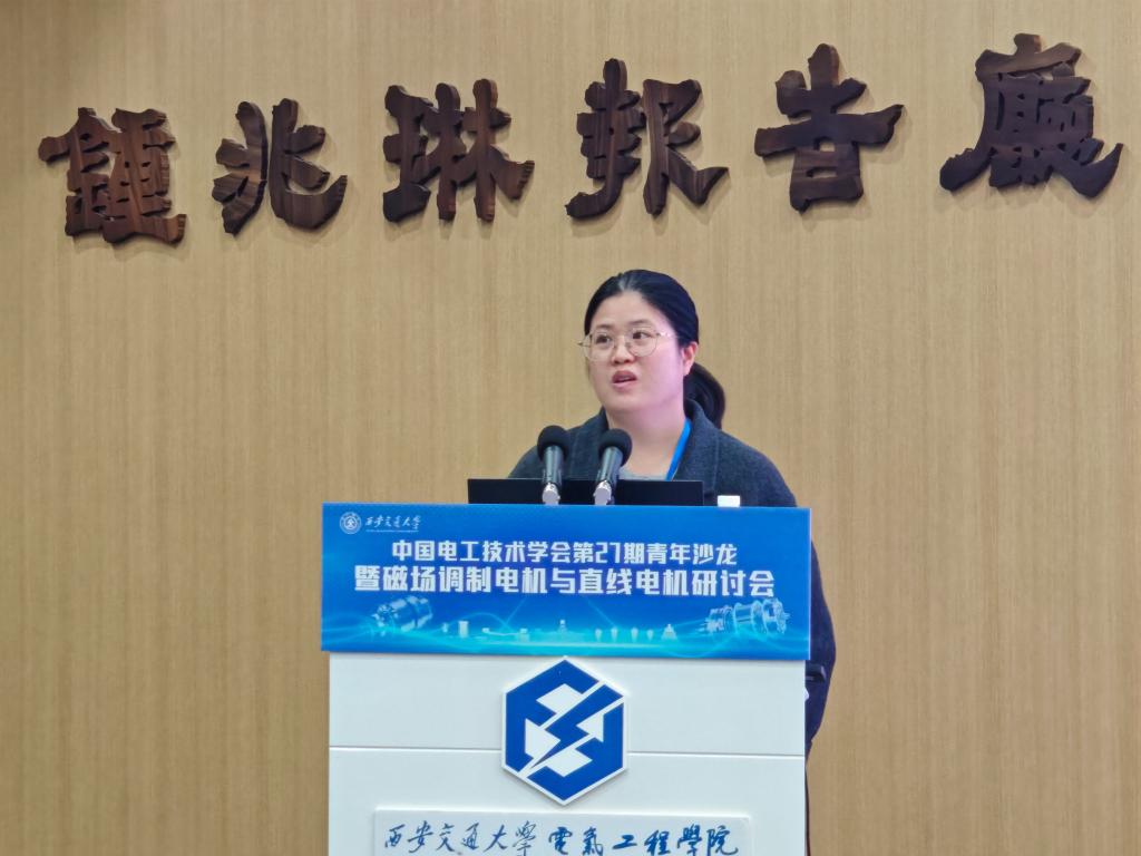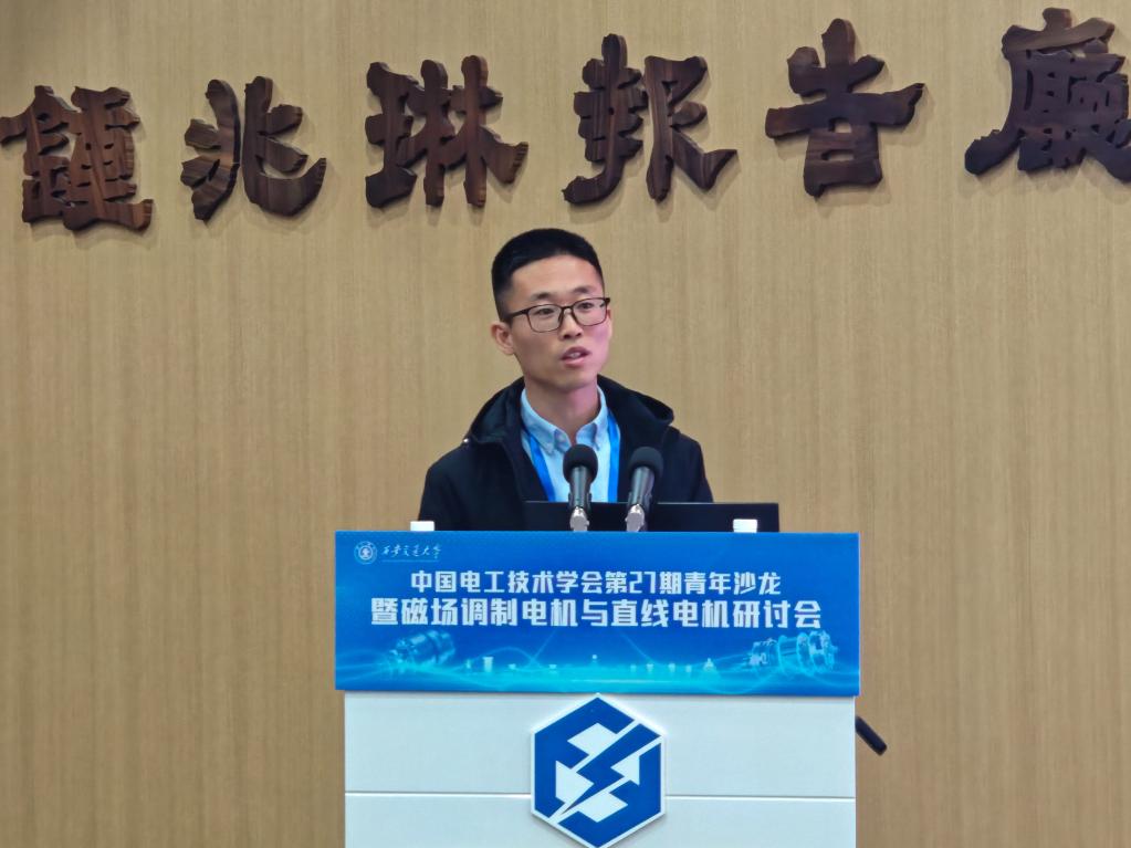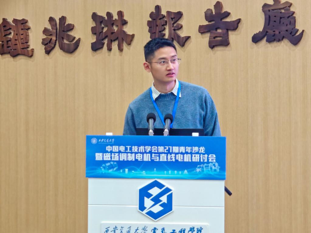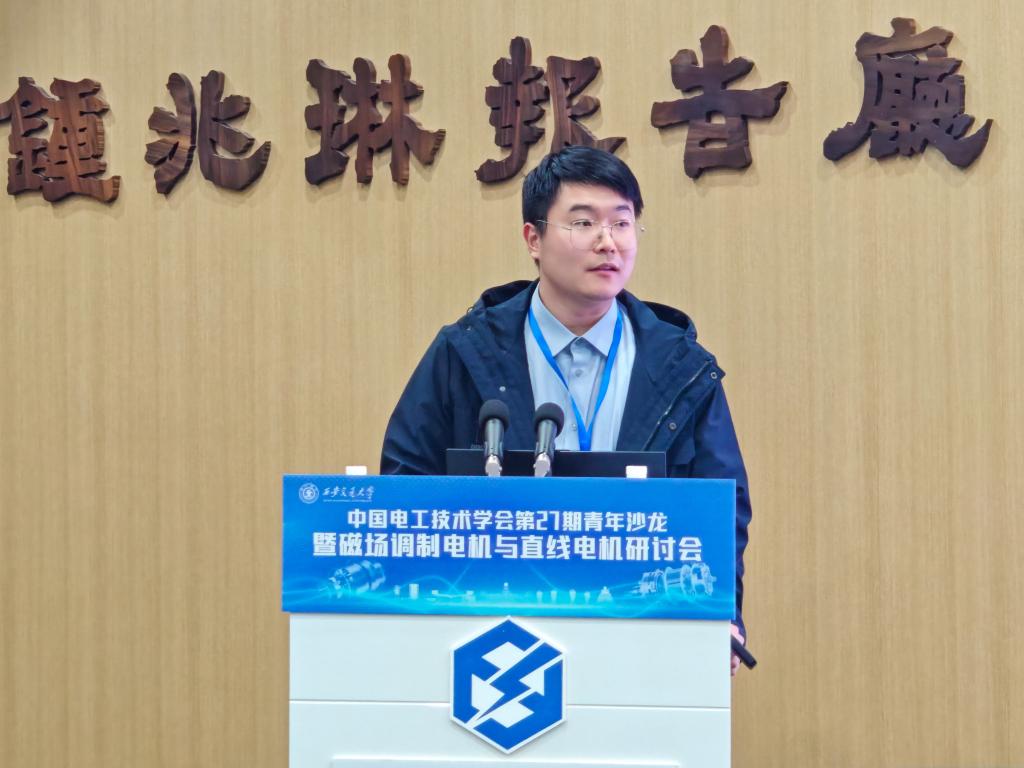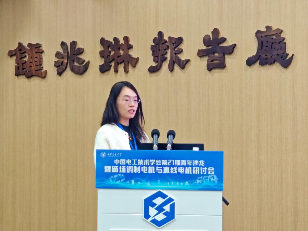 的青年学者周游助理研究员、陈红讲师、王学庆副研究员、徐亮副教授、梁阳助理教授,依次报告了各自在增材制造应用、高转矩密度磁场调制电机设计、多功率通道控制、谐波损耗抑制、高速电机控制等方向的研究成果。