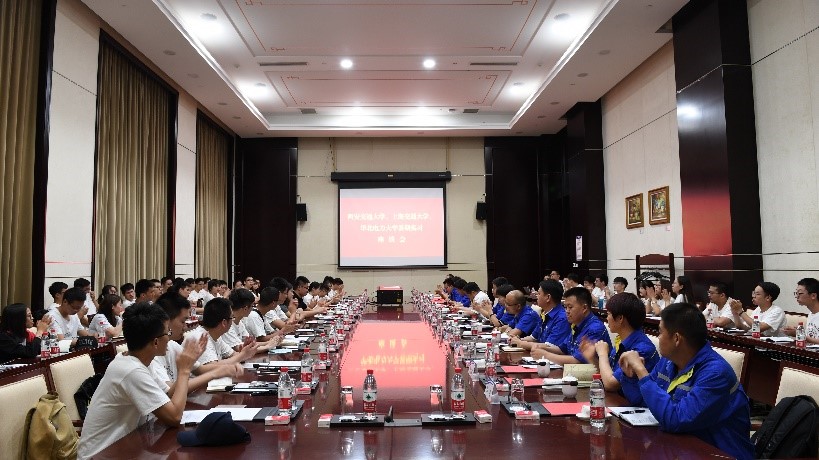 7月27日下午,交大实习队伍与上海交通大学和华北电力大学实习队伍在特变电工总部基地参加了暑期实习座谈会,特变电工董事长张新、副总工程师黄新楠、新能源产业总经理张新刚、人力资源总监李丹以及部分经营单位领导班子和校友参加了座谈会,与师生们“零距离”沟通和交流。
