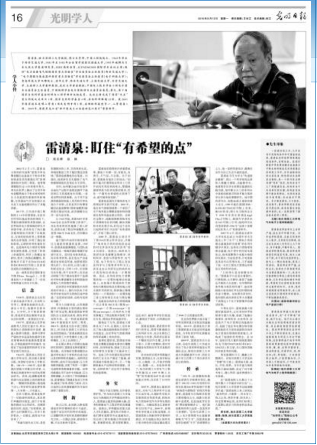 雷清泉所取得的许多重要成果,都是十年磨一剑,有抱负,有责任,不气馁,不言败。关于创新,雷清泉有他自己的体会:“创新不能只盯着那些在科学上已经开始闪光和发热的亮点,要瞄准国家科技与经济发展的需求,盯住一个隐约有希望的点坚持下去,就可能导致创新。”