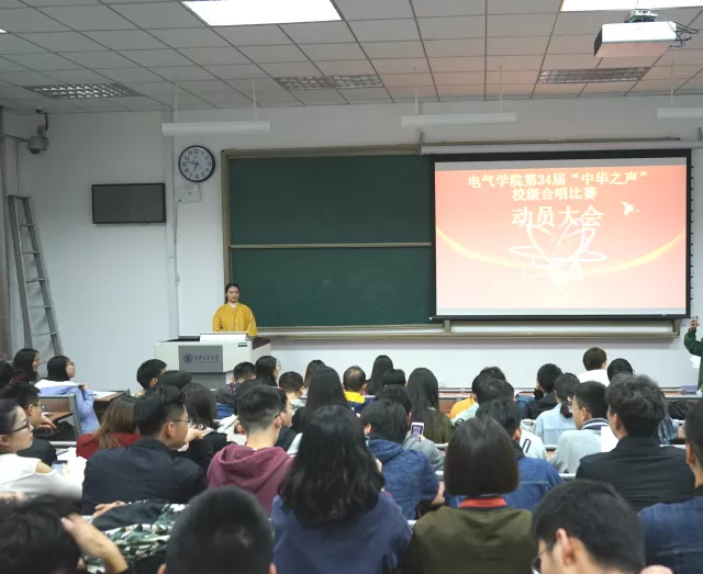 的赛前排练工作正式开始。动员大会于10月26日晚七点正式召开,六点三十分起同学们便陆续来到了教室。文艺部分管主席杨洋担任了动员大会的主持,向同学们介绍了具体的排练安排和纪律。动员大会对于后面的排练十分重要,所以各位队员们不敢有丝毫懈怠。大家听讲专注,参与积极,气氛十分活跃。