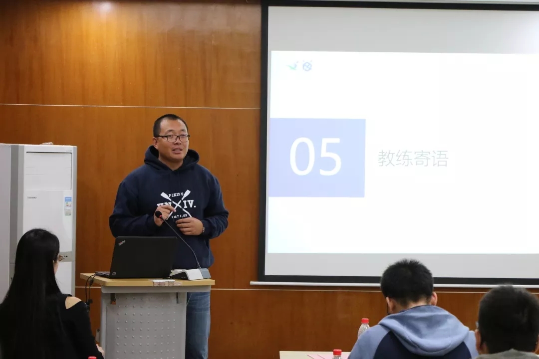 随后,团委副书记张彦鹏老师上台致辞,向电气赛艇队的新队员们讲述了自己与赛艇队伍的不解之缘,介绍了交大赛艇在近几年的发展中所展现出来的团队精神、拼搏精神,鼓励大家能够坚持下去,体验一段不同的生活,祝愿电气赛艇能够越做越好。