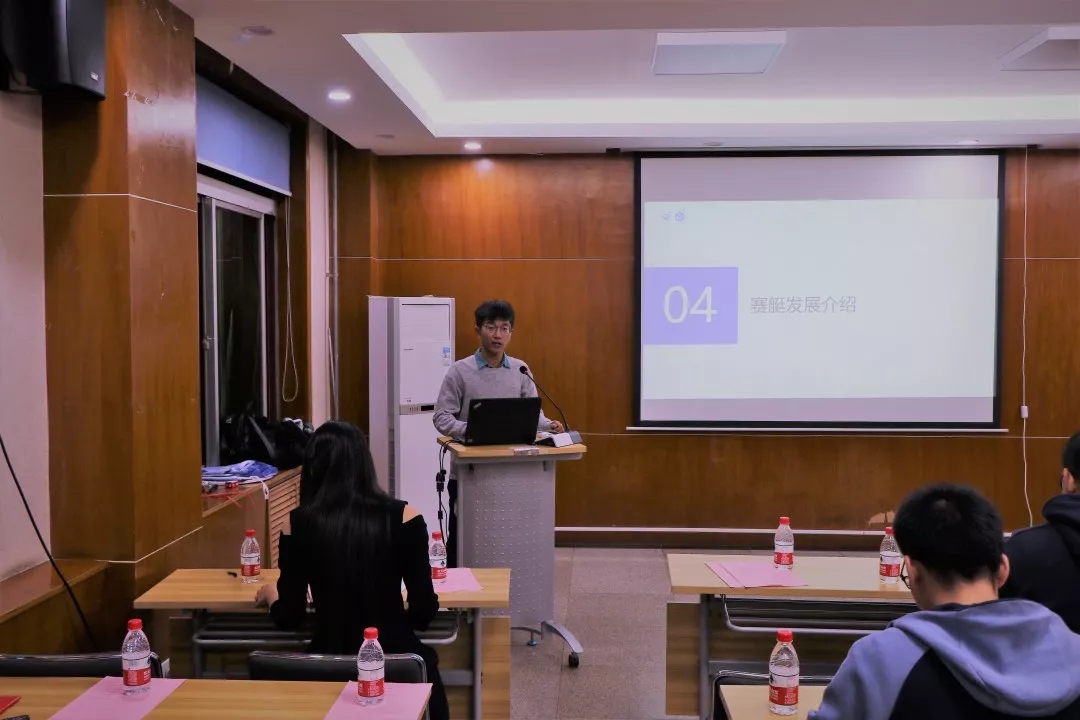 招新推送一经发出,立马得到了广大电气同学的积极相应,在电气研究生会和俱乐部经理人团队的协助下,使得电气赛艇创造交大赛艇队成立之最,成为了建队人数最多的队伍。性别比例的分配,则秉承交大工科优秀传统,男生占据了绝对优势,即便如此,仍然有超过一条八人单桨有舵手的阵容。之后常昊天同学还对赛艇运动的成员和分工进行了介绍,让大家对于赛艇运动的认识增加许多。