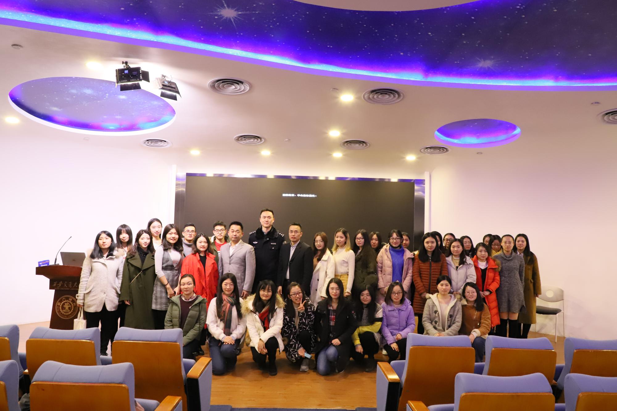 研分会携手校研会开展进行的“女生安全讲座”在钱学森图书馆二楼星空报告厅如期举办,讲座邀请到了兴庆路派出所刑警王警官,体育部擒拿教师洪流老师以及休闲小栈