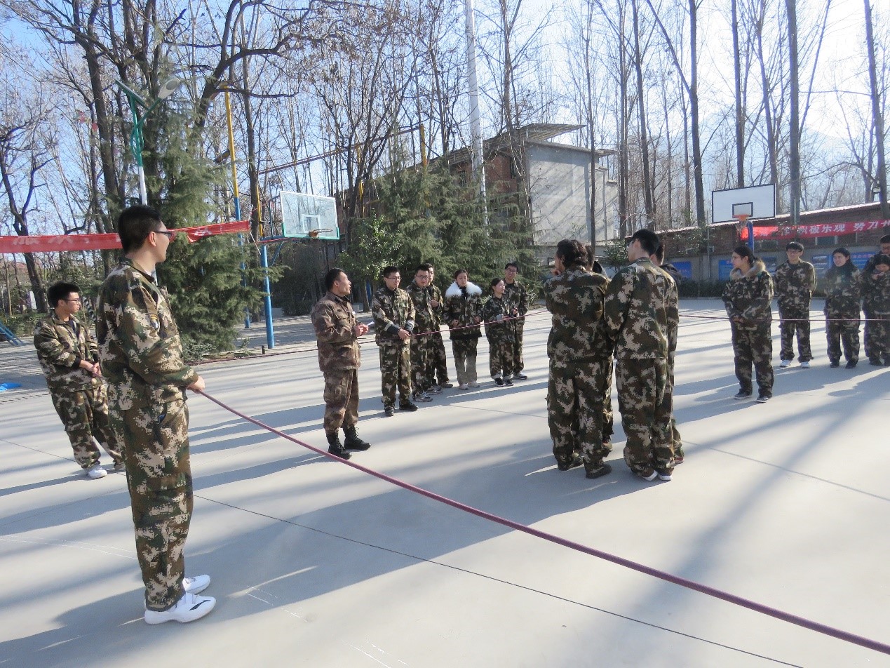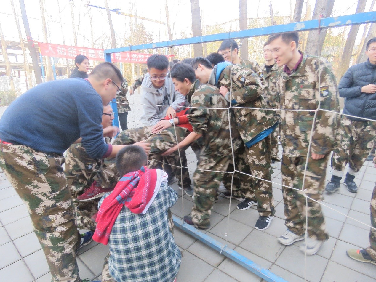 最后一个训练科目是胜利大逃亡。全部学员需安全通过空间有限的 “电网”障碍且身体的任何一个部分不能触碰到电网,否则所有已安全通过人次作废,全部队员重新开始挑战。所有学员选出一位总指挥,在总指挥的领导下,制定整体方案,协调全员有序过网。通过大家的共同努力,最终成功完成。这一科目旨在培养学员合理配置资源的能力,能够针对问题制定科学有效的解决方案。