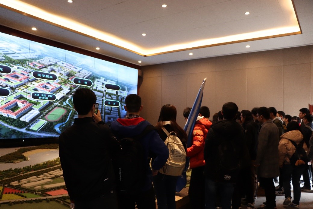 在创新港沙盘处,宋书记为大家逐一介绍了创新港的整体布局。交大创新港位临渭水河畔,占地1750亩,总建筑面积159万平方米,基地分为科研、教育、转孵化、综合服务四大板块,这些板块都将为未来入住创新港的学子们提供最全面的科研、生活服务,科研产业一条链也将吸引国内外知名企业在此设立研发中心、技术创新联盟,为我们的科研添砖加瓦。