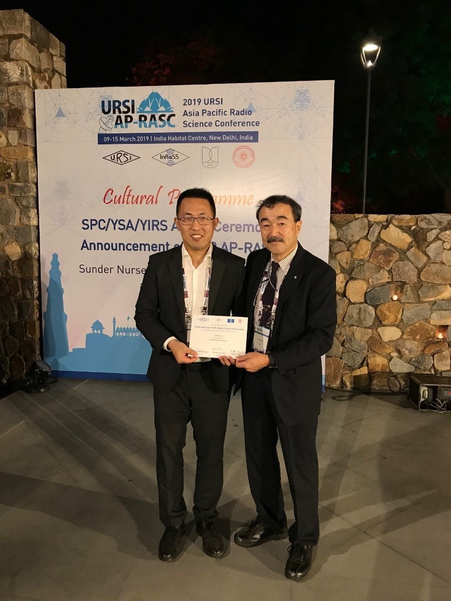 近日,在印度新德里刚闭幕的2019年亚太无线电科学会议上(2019 URSI AP-RASC),青年教师郭俊被国际无线电科学联盟(International Union of Radio Science, URSI)授予URSI青年科学家奖。该奖项是国际无线电学界评选青年科技人才的传统奖项,旨在奖励35岁以下在无线电科学相关领域做出突出贡献的青年学者,享有较高的国际知名度。郭俊是本届会议在电磁兼容领域(Commission E)的唯一获奖者。URSI主席Makoto Ando教授为郭俊颁发了奖项。