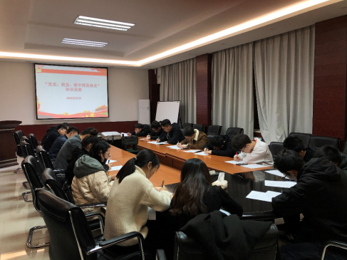 2019年11月27日晚,支部在绝缘楼2楼会议室开展“党史、校史、新中国发展史”知识竞赛。题目涵盖了从中国共产党成立至今党和国家发展过程中的重要事件,同时也涉及了休闲小栈