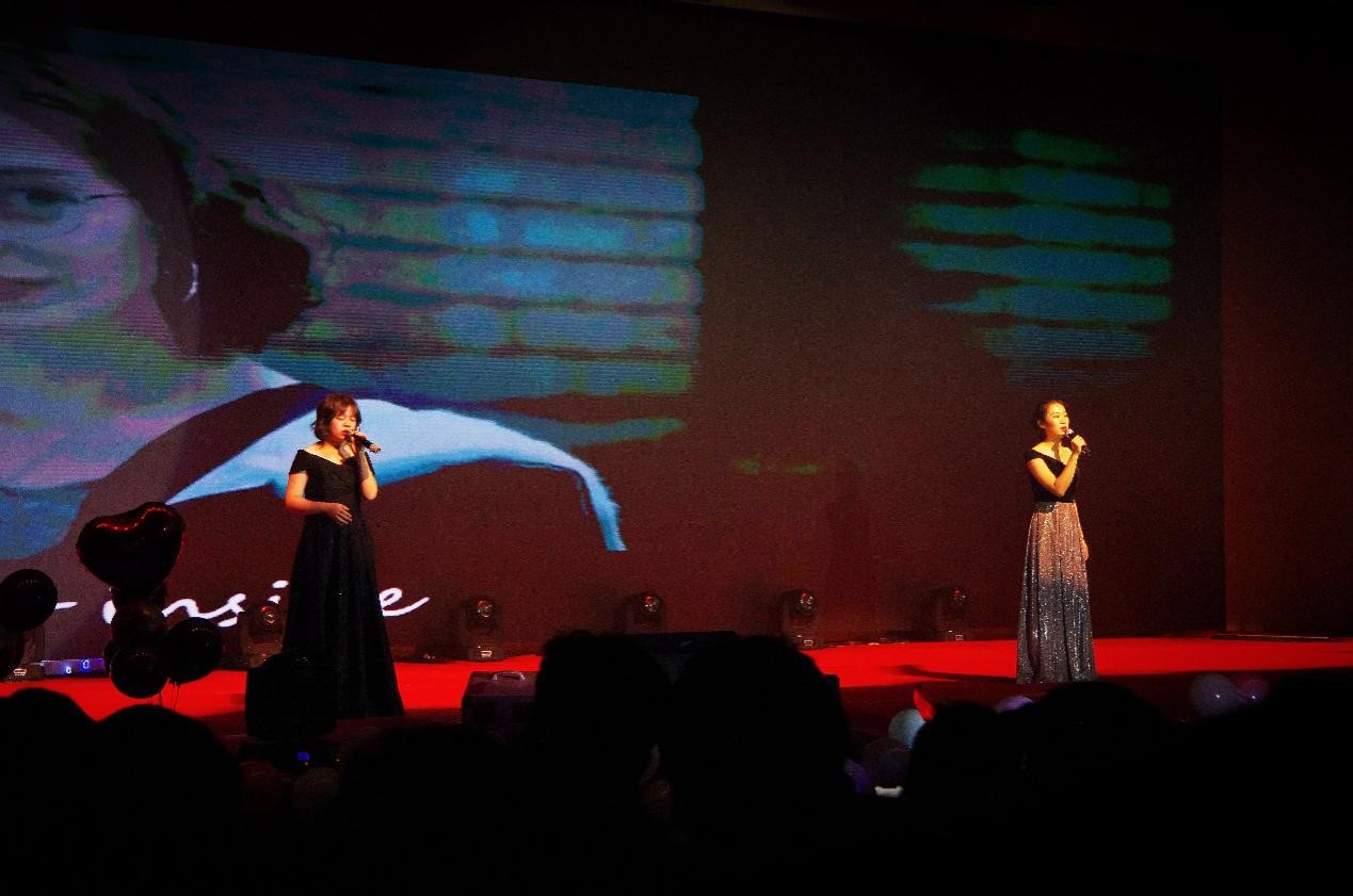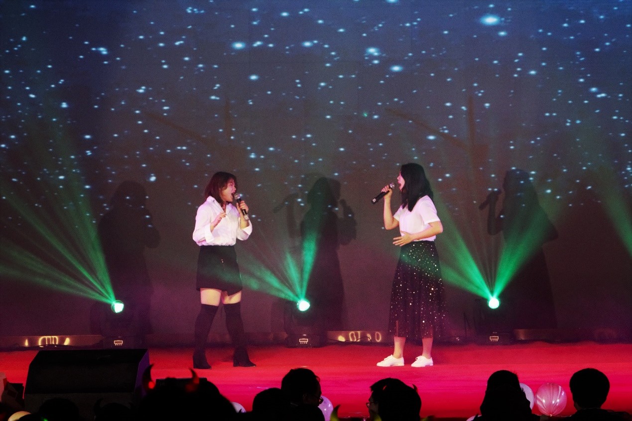舞蹈队带来的《beat it & attentiion》和动感的RAP 《we are young》以炫酷的舞姿和强烈的节奏感为第二篇章拉开了序幕。器乐演奏卡农奏鸣曲在静谧的氛围中融化;歌曲《爱,有点甜》以耳熟能详的歌曲串烧把大家的情绪推向高潮。