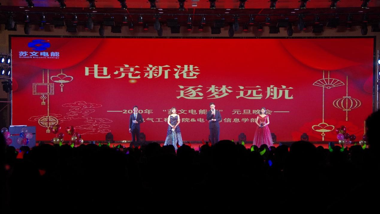 、电信学部共同举办2020年“苏文电能杯”元旦晚会。校党委研工部副部长薛周利、校团委书记苏翔、休闲小栈