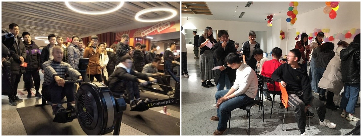 划船器竞赛现场则十分激烈,伸腿、倒体、屈臂,各个老师和同学拼劲全力,你追我赶,不断刷新着一分钟的最高记录,距离最长的同学更是达到了一分钟350米。拼尽全力,敢于突破是赛艇精神最真实的写照。抢凳子和拔河游戏则充满了欢声笑语,大家你争我抢,凭借着敏锐的反应和敏捷的动作争夺着最后的胜利。