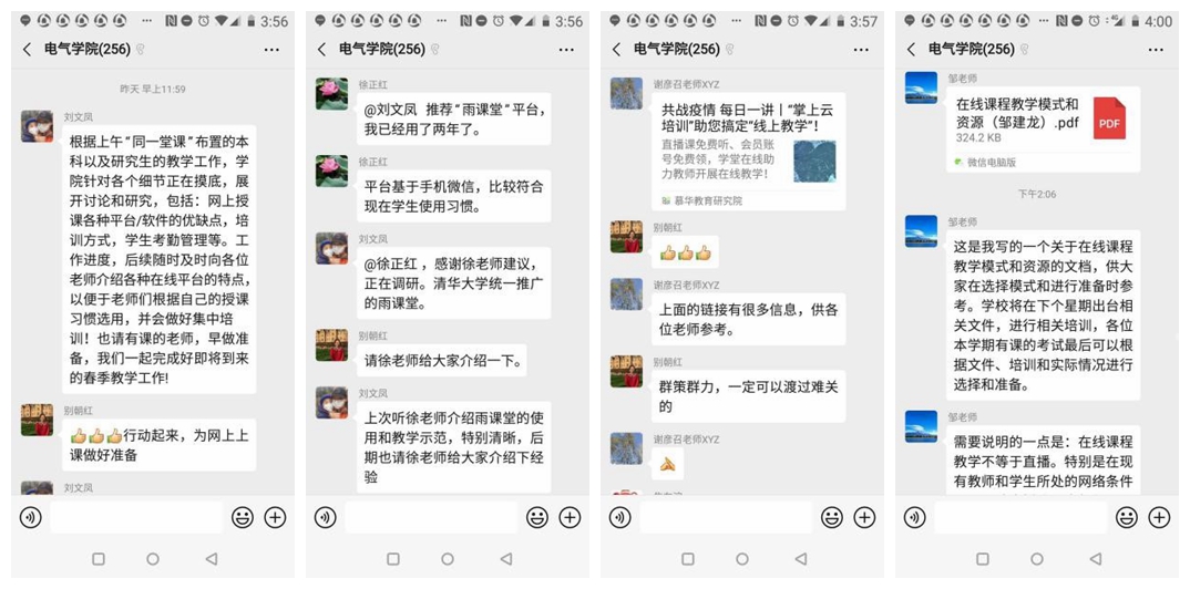 一刻没有停歇,严格依据学校2月7日上午“同一堂课”关于教学工作的安排,当天立即开始对各个细节摸底、调研,迅速展开讨论和研究。全院教职员工针对网上授课各种平台/软件的优缺点、培训方式、学生考勤管理等各抒己见,相互介绍经验,全院开启了一场探索特殊时期教学工作的大讨论。