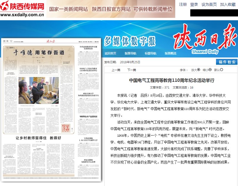 【陕西日报】中国电气工程高等教育110周年纪念活动举行