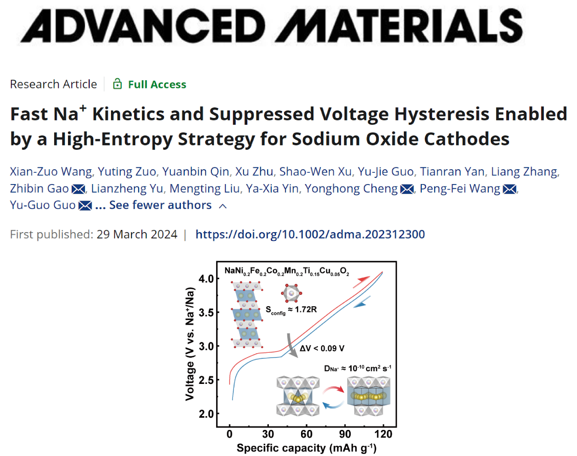 近日,该研究成果以《利用高熵策略提升层状正极Na+动力学并抑制电压滞后》(Fast Na+Kinetics and Suppressed Voltage Hysteresis Enabled by a High-Entropy Strategy for Sodium Oxide Cathodes)为题,发表在国际顶尖材料学期刊《先进材料》(Advanced Materials)上。休闲小栈