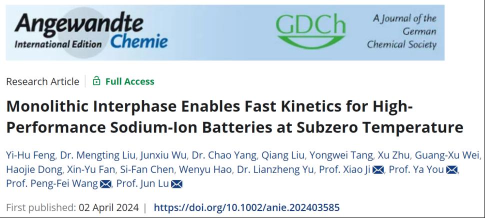 该研究成果以《整体式电极/电解液界面促进低温下钠离子的快速传输》(Monolithic Interphase Enables Fast Kinetics for High-Performance Sodium-Ion Batteries at Subzero Temperature)为题,发表在国际顶尖学术期刊《德国应用化学》(Angewandte Chemie International Edition)上。休闲小栈