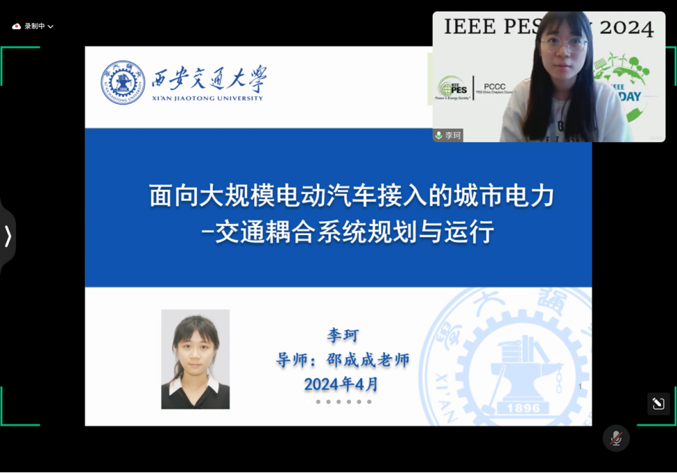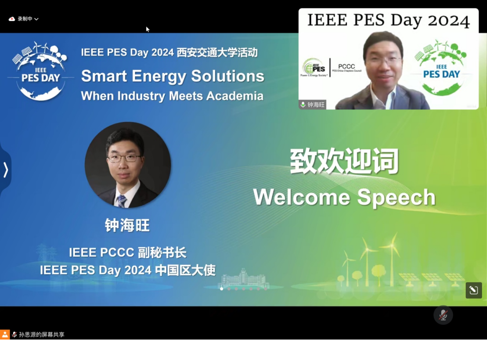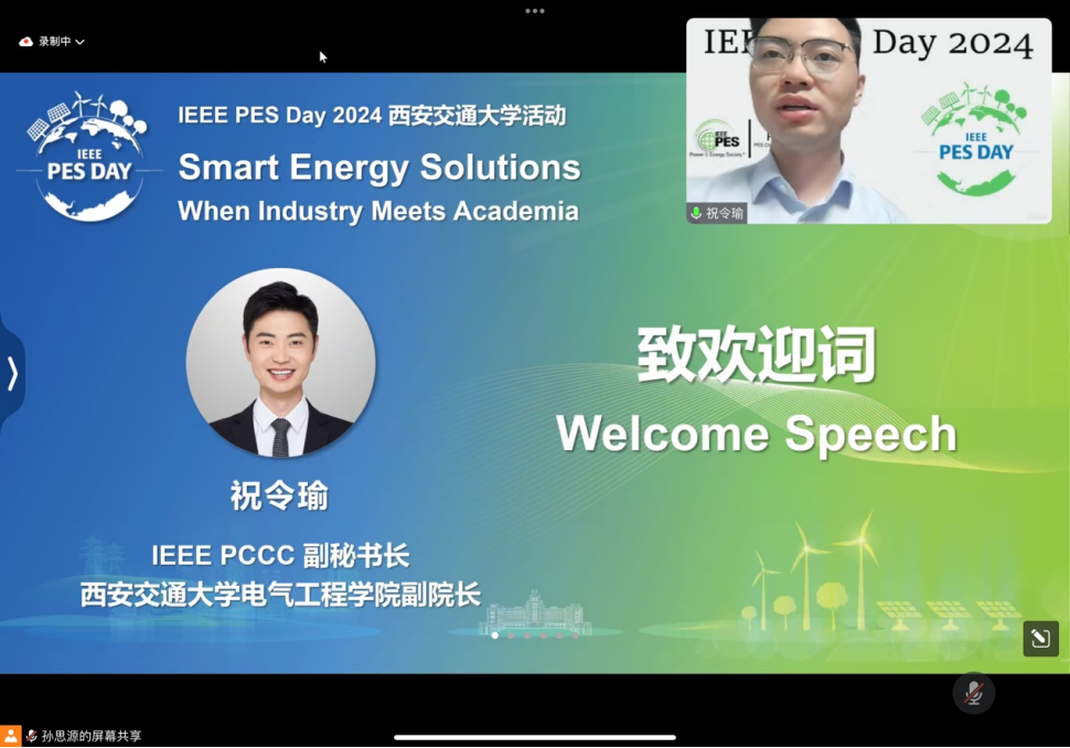 学生分会主席、IEEEPES Day 2024西安区大使孙思源主持。