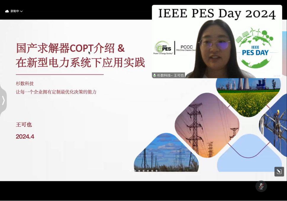 杉数科技电力领域算法工程师王可也专家作了题为“国产求解器COPT在电力场景中的落地实践”的主题报告,从基本原理、应用场景和使用方法等方面介绍了COPT在电力系统优化问题中的应用,并就电力市场机组组合问题和代码编写进行了具体展示。