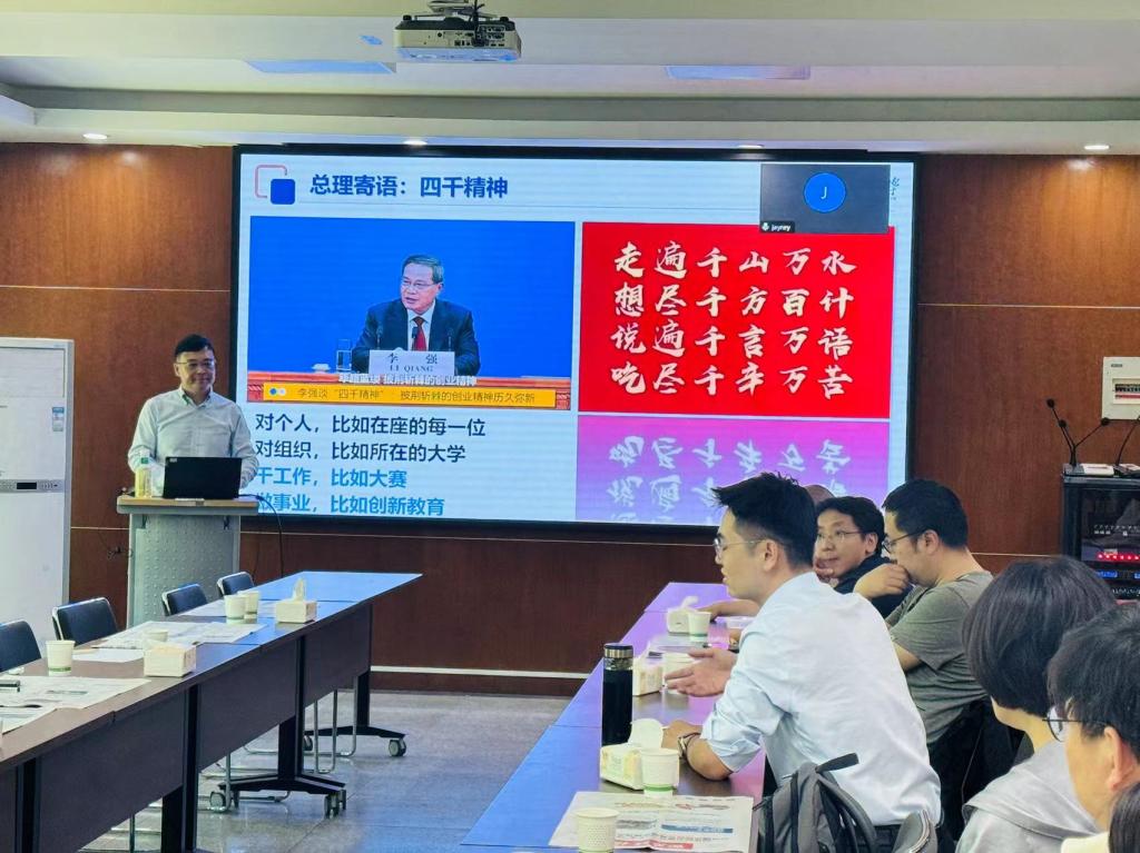 陈立斌从名称演变、大赛的重要性和申报注意事项三个方面对“中国国际大学生创新大赛(原互联网+)”进行了详细阐述。他强调此类大赛对教师职业发展和学生综合素质培养十分重要,指出学院应结合自身特色,专注于专业人才培养,着重培养学生的实践能力、应变能力、乐观精神和团队合作精神,并对学校以高水平竞赛为抓手推进产教融合、科教融汇的政策举措进行了宣讲。陈立斌分析了我校的成功获奖案例,对休闲小栈 双创教育和学科竞赛取得的成绩给予了充分肯定,并对下一步工作提出了要求和建议。最后,他详细阐述了我校从课内到课外,从项目到竞赛,从创意到创业的实践和竞赛育人体系,建议学院系统化推动实践教学和创新创业教学改革,培养具备复杂工程问题解决能力的卓越工程人才。