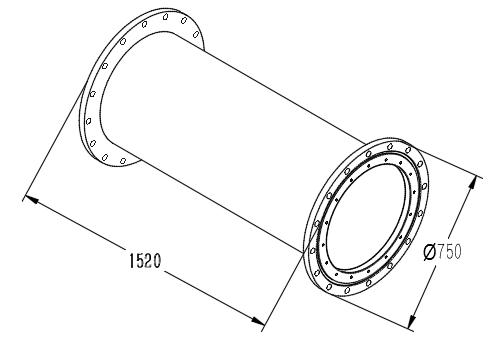 ①根据采购方设计图纸要求,完成高压脉冲源初级段机械加工,高压脉冲源初级段机外筒外形尺寸为φ750×1820mm,包含变压器外筒、内筒两部分。主体材料为304不锈钢材质,附属变压器磁芯,分别与内外筒一体化烧结工艺。