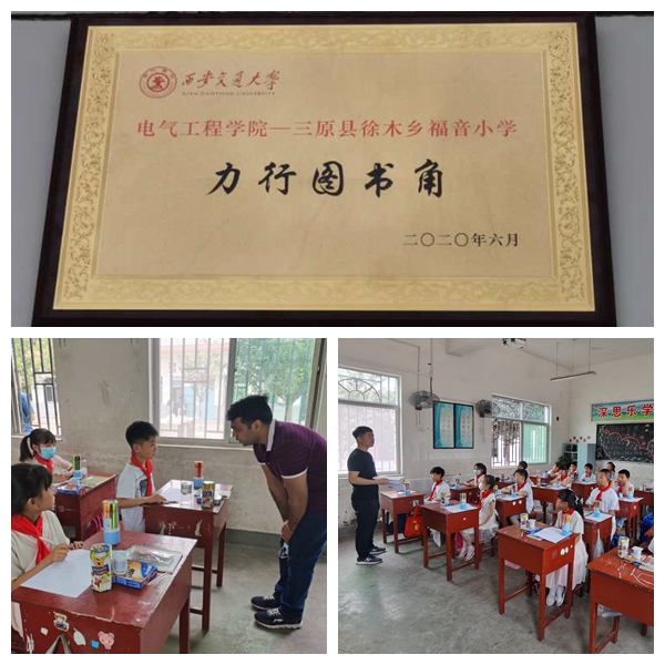 电测师生联合党支部一行16人走进红色渭北,在陕西省第6批博士服务团三原县挂职副县长、西安交大国际教育学院副教授王美玲的带领下,来到了三原县徐木乡福音小学。支部为福音小学捐赠“力行图书角”,给每位同学送出一份爱心小礼包,激励祖国的花朵在未来绽放光彩。