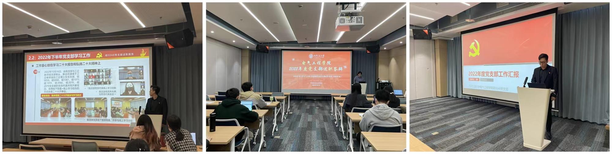 2022年度党支部工作质量评价主要指标》要求,电测师生联合党支部、电机师生联合党支部、电器党支部、绝缘党支部、高压党支部、发电党支部、工企党支部、三电党支部、重点实验室党支部、院办党支部分别对年度工作成效、工作不足和改进措施进行了汇报。