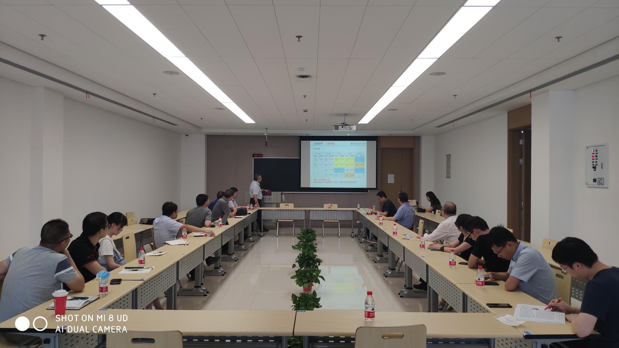 副院长郝治国介绍了学院科研工作基本情况和发展规划,焦在滨同志分享了第五轮学科评估新动态和学院近年相关数据。