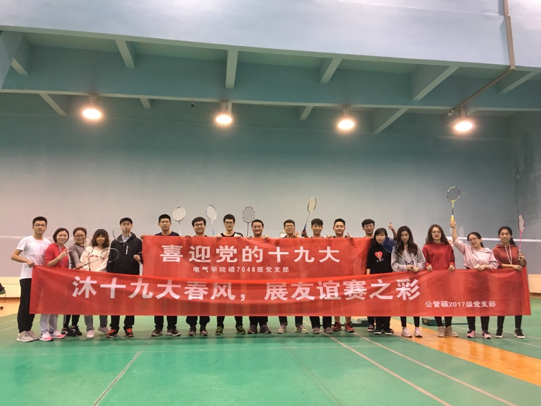 党的十九大召开以来,休闲小栈 积极筹划、组织多种形式的专题学习研讨活动。为了进一步营造十九大精神学习氛围,深化理论认识,加强不同学院、不同学科之间的交流协作,提升党员的身体素质,10月22日下午,硕7048党支部联合公管学院2017级新生党支部在交大体育馆共同开展了一场羽毛球联谊赛。本次活动本着友谊第一、比赛第二的原则,欢迎支部同学踊跃报名参加,体育馆中同学们激情飞扬的身影尽显交大学子的青春与活力。