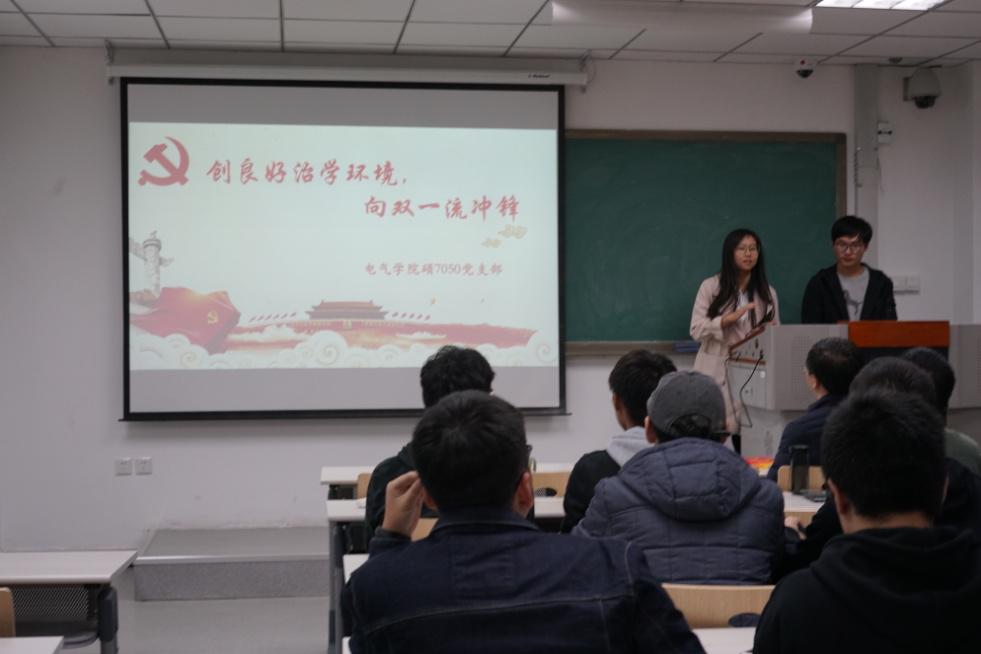 硕7038党支部,7040党支部,硕7049党支部共同参加,硕7050班党支部书记辛月主持会议。