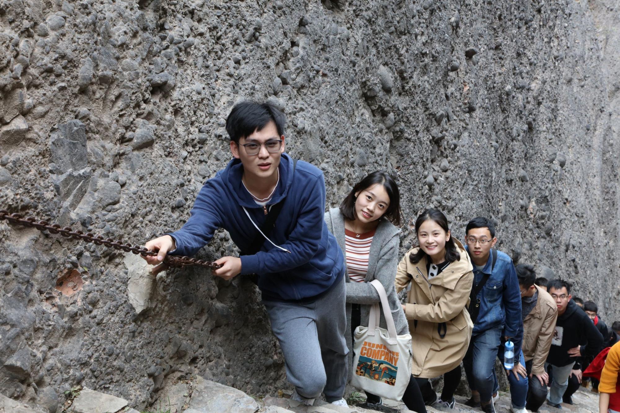 实践队员一步一步攀登着崎岖的阶梯,追寻当年革命先辈在此艰苦斗争的足迹。大家看到红军时期如此艰苦的条件,都纷纷感到触动和震撼,立志将这种艰苦奋斗的精神转化为科研的不懈动力。下山过程中,红歌飘扬,旌旗猎猎,本次赴照金革命实践教学活动也就落下了帷幕。