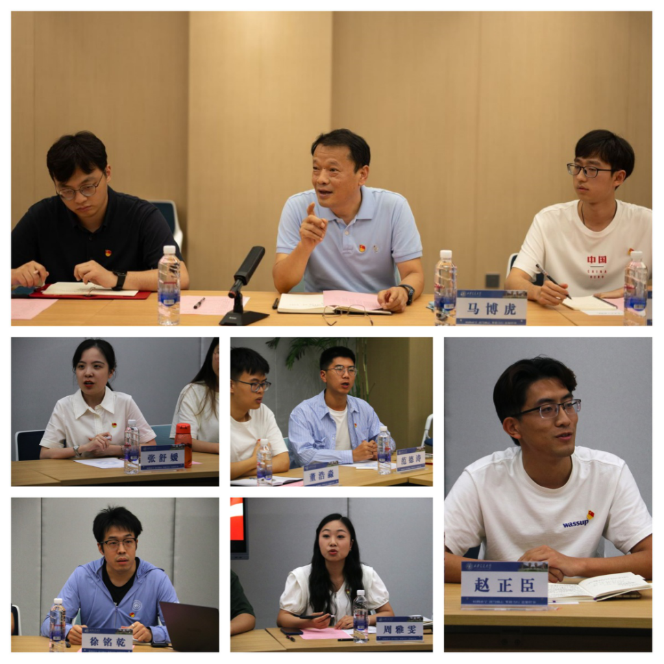 马博虎结合自身工作经历和党纪学习教育具体要求,在讨论交流中指出,党员应权责并重,树立明确是非观,以思想引领行为,强化意识形态,筑牢思想防线。要以科研学习为导向,强化守纪自觉,摒弃形式主义,结合实际深化党纪学习教育入脑入心。马博虎强调,研究生党支部应注重党建与科研、与人才培养的深度融合,结合党员的实际需求和国家、社会发展需求,加强政治教育,引导党员积极思考如何服务国家重大战略,引领未来发展。马博虎勉励同学们勇于创新、敢于担当,不负时代赋予的使命,在奋斗中获得快乐,在成长中获得满足,用新时代新青年的新作为助力中国式现代化强国建设和民族复兴伟大进程。
