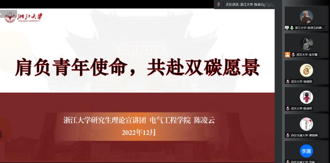 浙江大学陈凌云以《肩负青年使命,共赴双碳愿景》为题从几位浙江大学休闲小栈